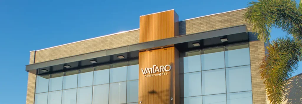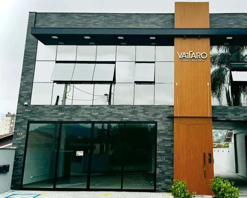 Sede própria da Vattaro, construída em pré-moldado e concreto convencional. Inaugurada no 10º ano da empresa, prioriza conforto para funcionários, fornecedores e clientes. Arquitetura moderna com acabamentos de alto padrão e soluções sustentáveis, como placas fotovoltaicas.